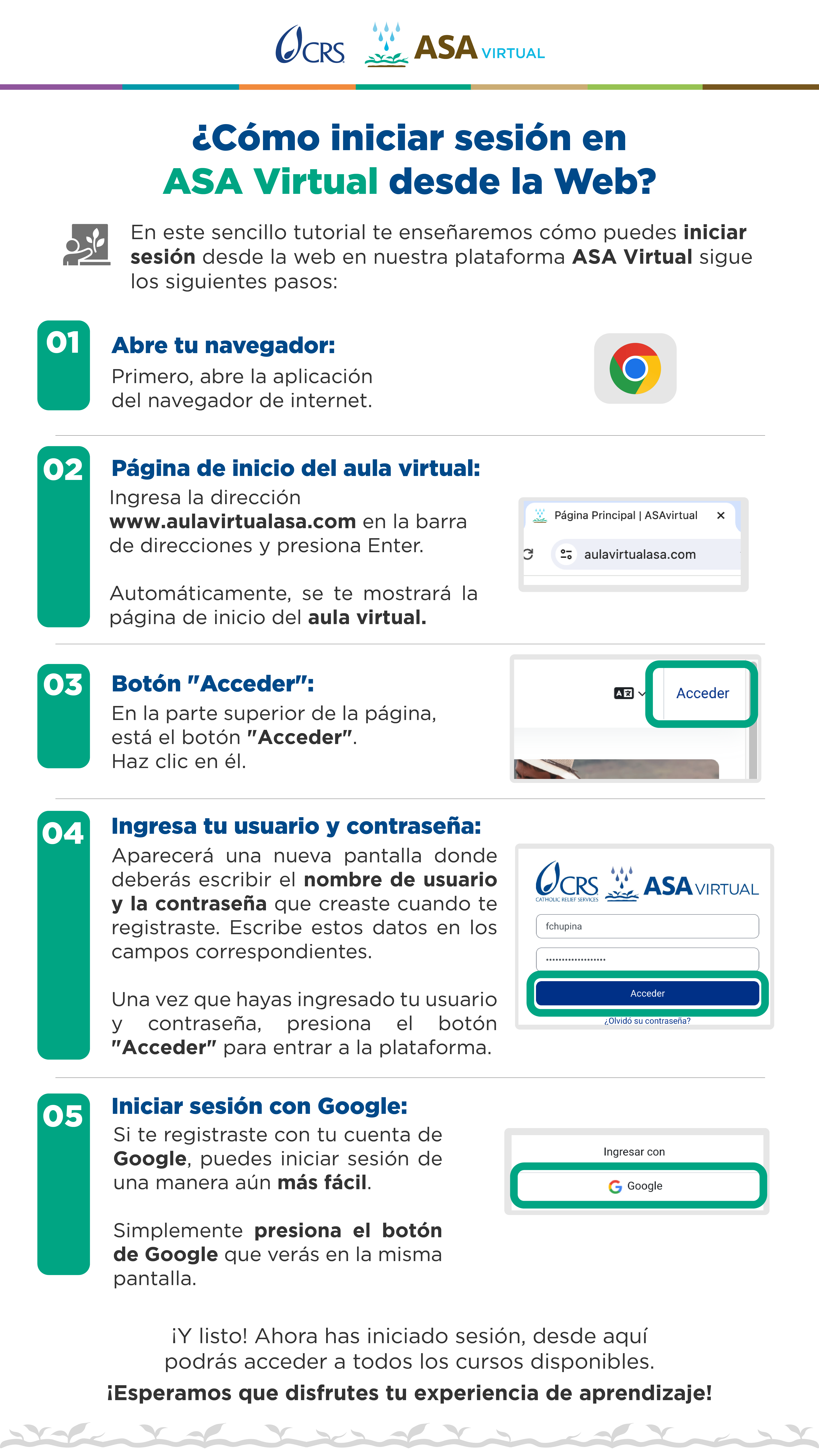 Para ingresar al aula, dirígete a la parte superior derecha de la página y haz clic en el botón "Acceder". Tienes dos opciones para iniciar sesión: